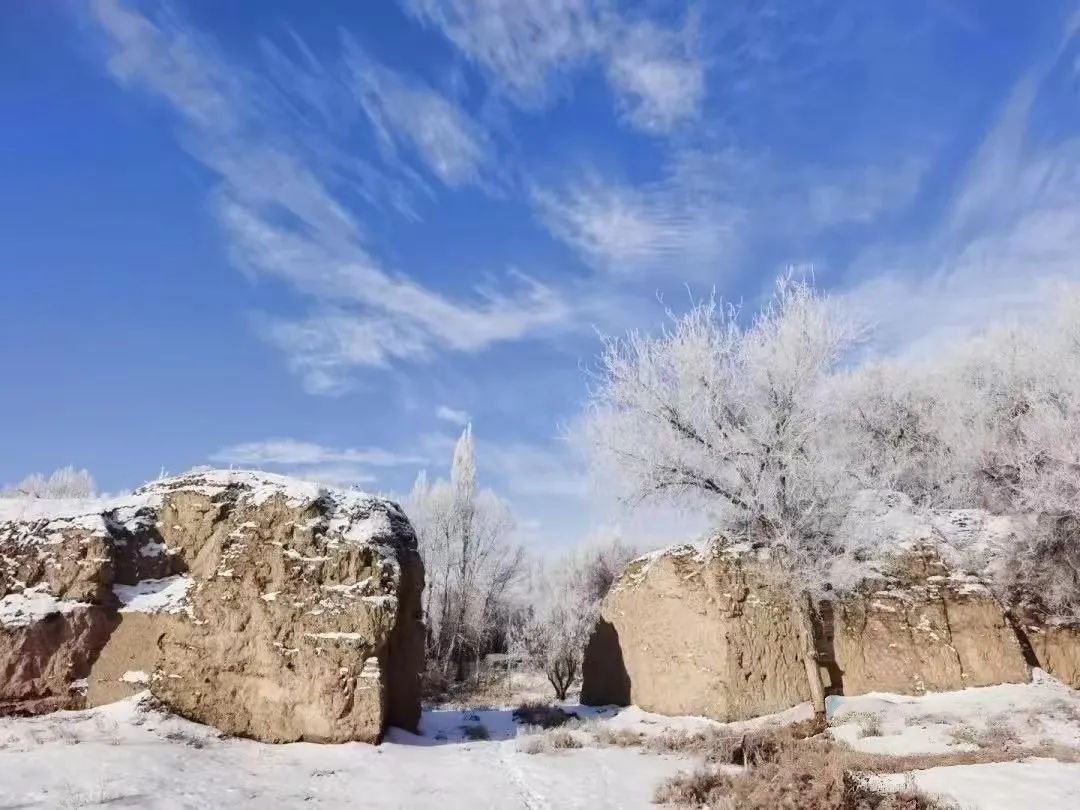 “忽如一夜春風來,千樹萬樹梨花開。”這是唐朝邊塞詩人岑參一千多年前在北庭所見的北國風光。大雪時節(jié),新疆北部早已銀裝素裹,位于新疆昌吉回族自治州吉木薩爾縣的北庭故城國家考古遺址公園,被皚皚白雪覆蓋。