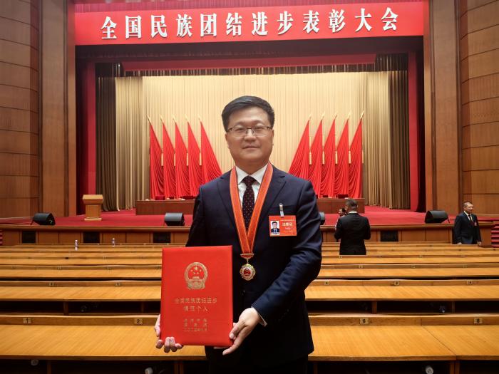 圖為孫樹學出席全國民族團結進步表彰大會。受訪者供圖