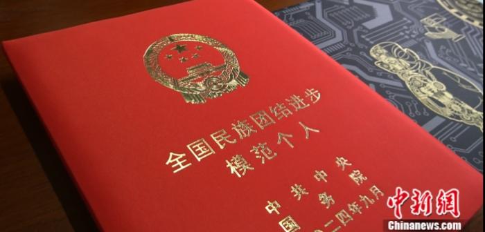 圖為孫樹學榮獲的全國民族團結進步模范個人證書 中新網(wǎng) 林勐男 攝