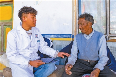 89歲的南加是村里最年長(zhǎng)的老人,也是索朗丹增牽掛的對(duì)象。每個(gè)月,他都會(huì)拿起“智能書(shū)包”和平板電腦,上門為老人提供健康服務(wù)。包里裝著血壓計(jì)等,平板電腦里有老人的健康資料。