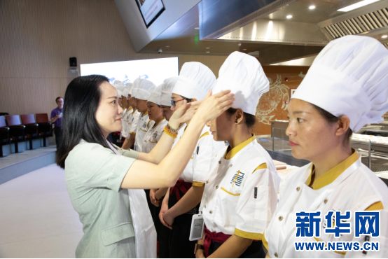 圖為東莞市稻香中菜廚藝職業(yè)培訓(xùn)學(xué)院院長李坤媛與學(xué)員(4月2日攝)。新華網(wǎng)發(fā)(林芝市人力資源和社會(huì)保障局供圖)
