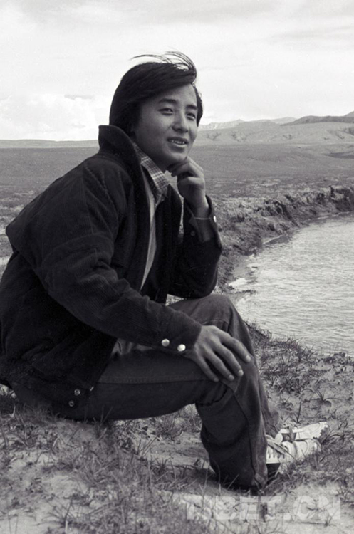 這是原文部辦事處(現(xiàn)尼瑪縣)機(jī)要科陳杰在小鎮(zhèn)旁河邊請(qǐng)記者為他拍照留念,以寄回家鄉(xiāng)免父母擔(dān)憂(yōu)(唐召明1987年攝)