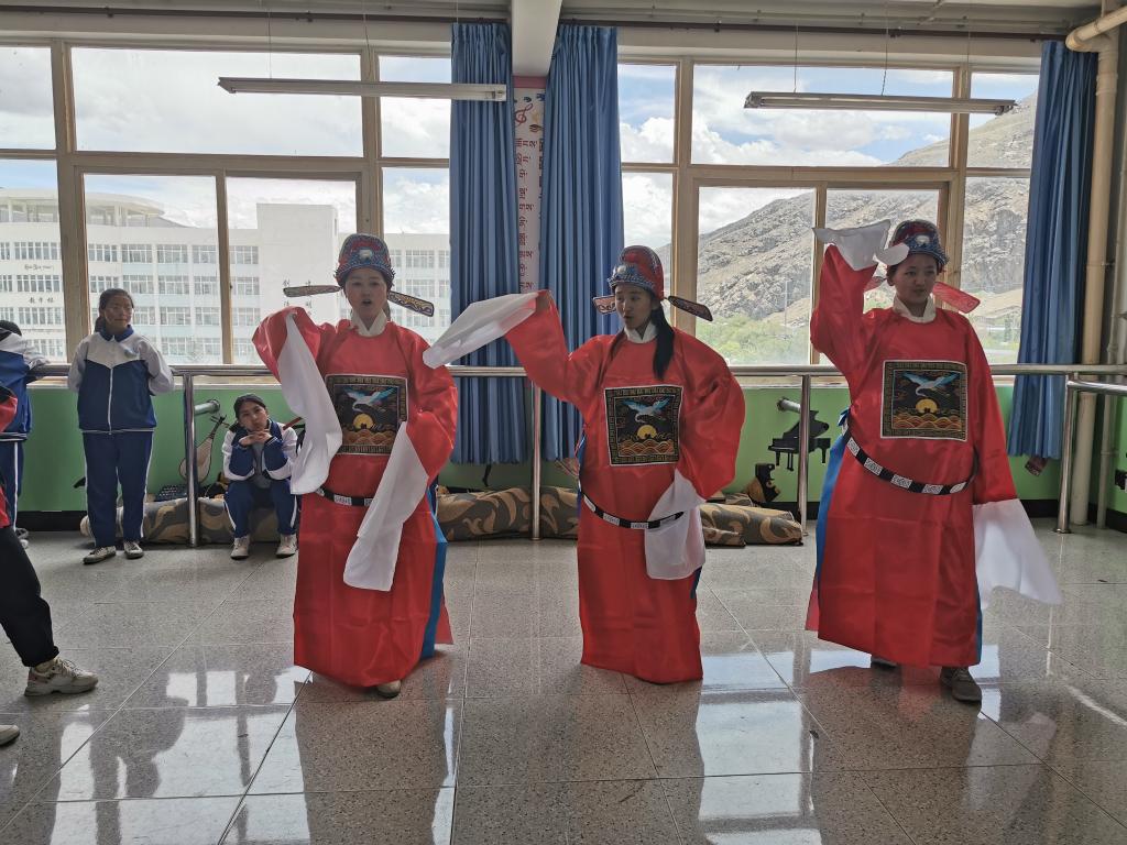 幾天相處下來(lái),她看到藏族孩子能歌善舞的天性,便主動(dòng)把家鄉(xiāng)的黃梅戲表演給學(xué)生。隨著學(xué)生對(duì)黃梅戲愈發(fā)好奇,金慧琳組建了全區(qū)首個(gè)藏漢雙語(yǔ)黃梅戲?qū)W生社團(tuán),并以黃梅戲代表性曲目《女駙馬》為藍(lán)本,以藏式歌舞為表現(xiàn)形式,進(jìn)行創(chuàng)造性轉(zhuǎn)化和創(chuàng)新性發(fā)展。