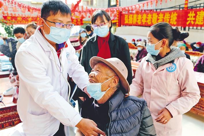 每年的10月是山南市瓊結(jié)縣的“敬老月”,2020年10月30日,縣衛(wèi)生系統(tǒng)黨總支組織縣人民醫(yī)院、藏醫(yī)院、疾控中心、醫(yī)保局等醫(yī)務工作者,在縣特困人員集中供養(yǎng)中心開展了以“弘揚養(yǎng)老孝老敬老傳統(tǒng)、共建共享老年友好社會”為主題的健康服務活動。讓老人們切切實實感受到黨和政府的關懷和溫暖,感受到全社會的關愛和重視。 圖為縣人民醫(yī)院援藏醫(yī)生正在為老人檢查身體(2020年10月30日攝)。