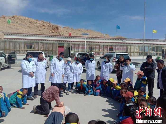 醫(yī)療隊為波絨鄉(xiāng)中心小學師生進行心肺復(fù)蘇現(xiàn)場培訓。 煙臺援藏醫(yī)療隊供圖
