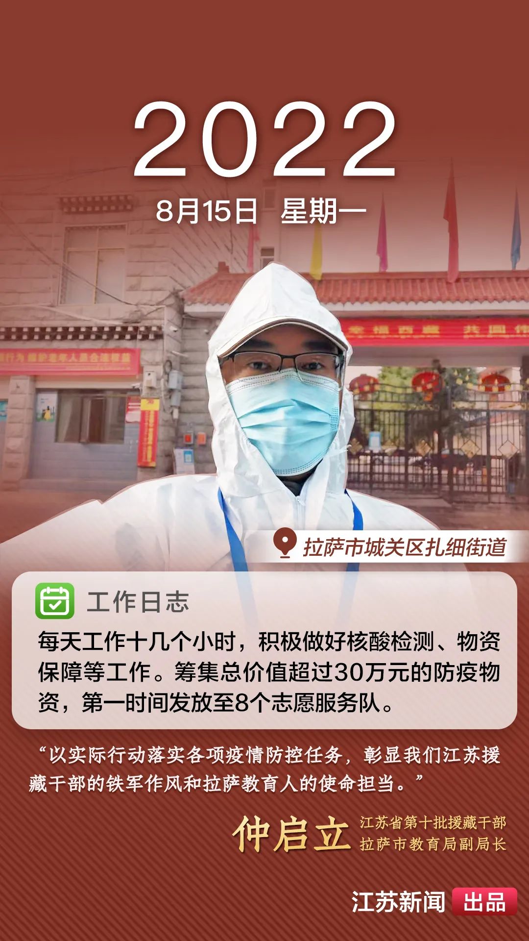 2022年8月,一場突如其來的新冠肺炎疫情襲擊拉薩。江蘇援藏前方指揮部樹立高度的政治意識,堅(jiān)決貫徹江蘇省委、省政府主要領(lǐng)導(dǎo)批示精神和自治區(qū)、拉薩市部署要求,全力以赴做好疫情防控工作。第十批援藏干部人才克服初到高原的身體反應(yīng),服從服務(wù)大局、勇于擔(dān)當(dāng)作為,迅速投身疫情防控工作一線,以實(shí)際行動(dòng)展現(xiàn)江蘇援藏的鐵軍作風(fēng)。近期,我們將陸續(xù)推出江蘇援藏干部人才抗疫身影,敬請關(guān)注。