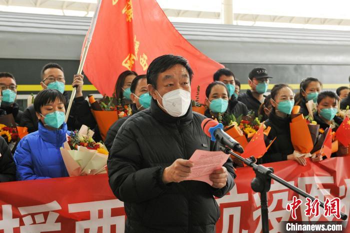 當(dāng)日,官方為醫(yī)療隊舉行歡迎儀式,工作人員手捧鮮花,以最高禮遇、最深敬意歡迎“白衣執(zhí)甲、逆行出征”的無私奉獻者們。青海省副省長、省疫情防控指揮部副指揮長匡湧出席歡迎儀式并講話。