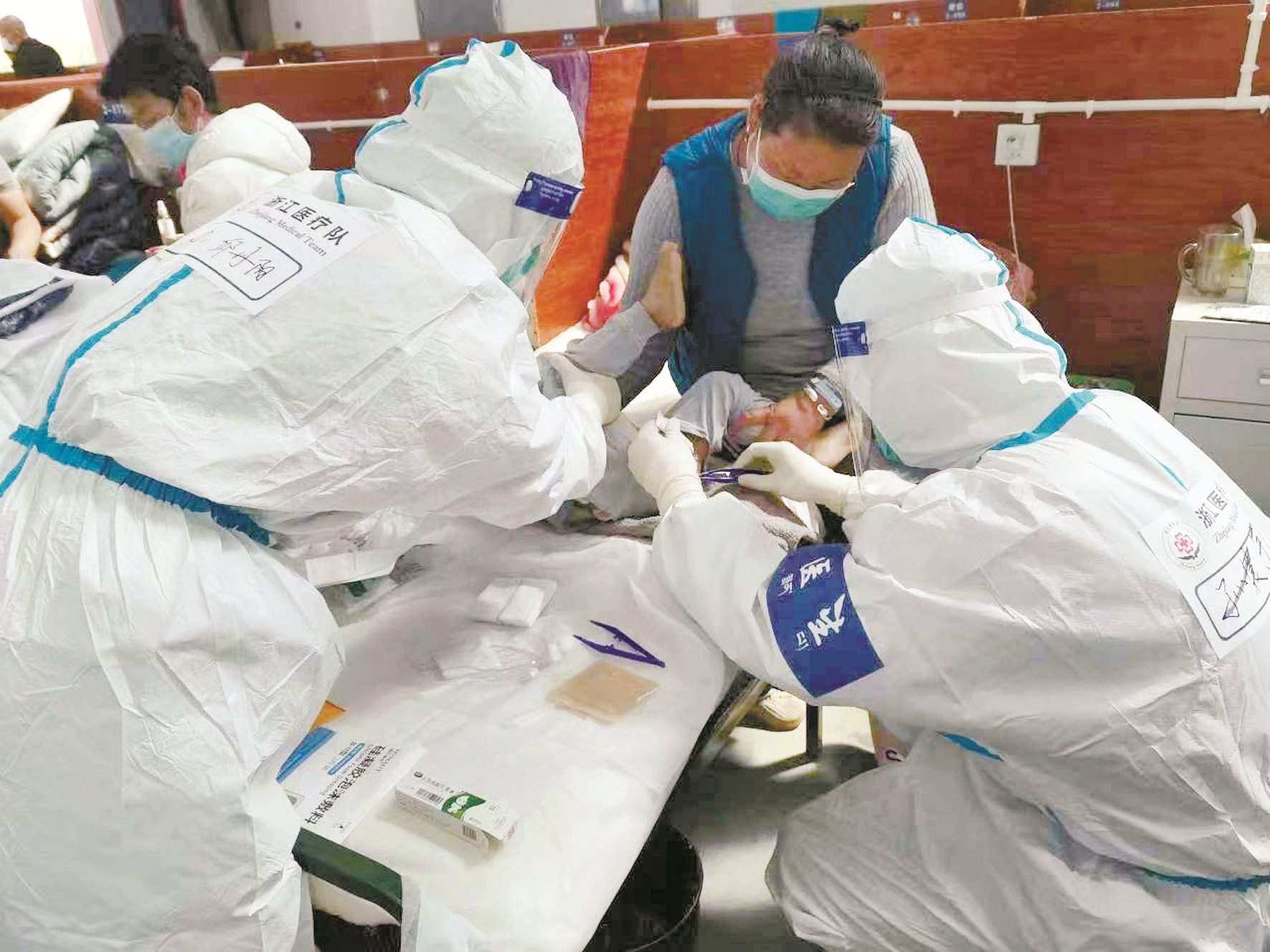 浙江援藏醫(yī)療隊護理小組共有8組,每個小組20名隊員,在艙內,他們協(xié)助醫(yī)生做好患者護理工作的同時,還要對艙內環(huán)境進行清潔、消殺,辦理患者入艙手續(xù)、安排康復人員出艙等,擁有著多重“身份”。