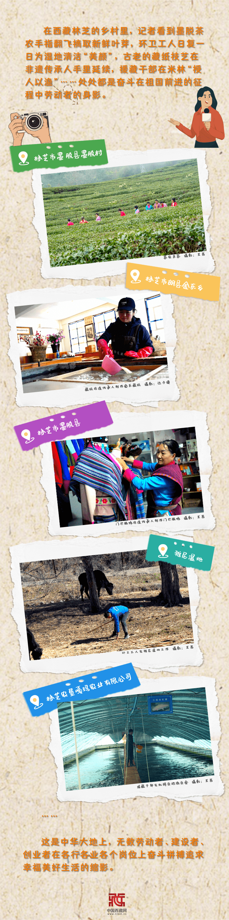 在西藏林芝的鄉(xiāng)村里,記者看到墨脫茶農(nóng)手指翻飛摘取新鮮葉芽,環(huán)衛(wèi)工人日復(fù)一日為濕地清潔“美顏”,古老的藏紙技藝在非遺傳承人手里延續(xù),援藏干部在米林“授人以漁”……處處都是奮斗在祖國(guó)前進(jìn)征程中勞動(dòng)者的身影。這是中華大地上,無(wú)數(shù)勞動(dòng)者、建設(shè)者、創(chuàng)業(yè)者在各行各業(yè)各個(gè)崗位上奮斗拼搏追求幸福美好生活的縮影。