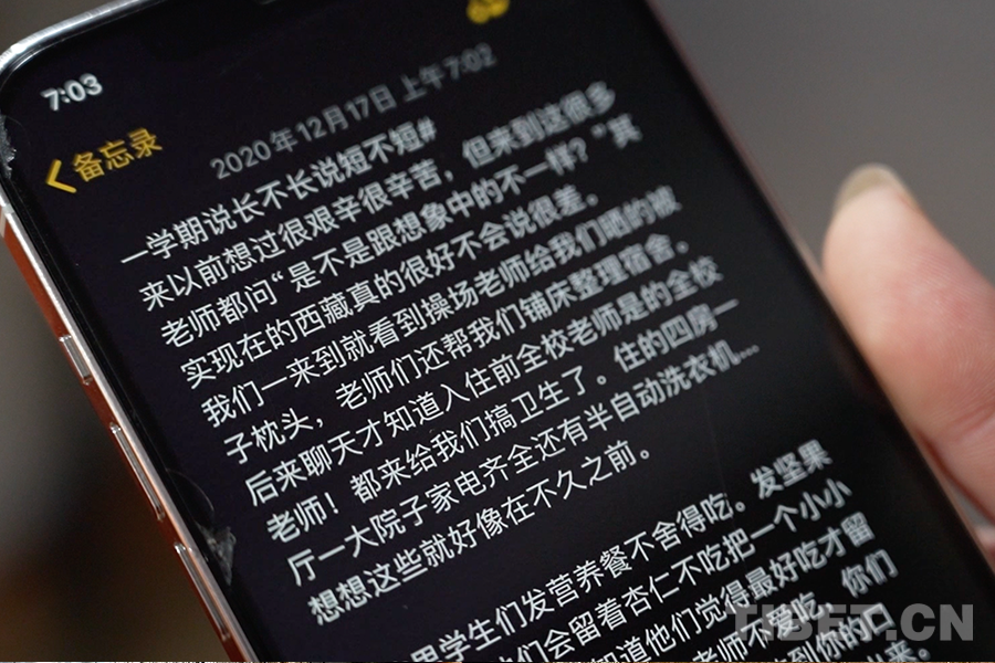當(dāng)吳穎琦被問到為什么再次選擇西藏,我看見了她眼里充滿的熱愛和期待?!拔移鋵?shí)也說不清楚為什么想留下,只是如果不這么做,我怕自己會(huì)遺憾,總覺得還能為這片土地做更多?!边@是她手機(jī)備忘錄里的一句話。
