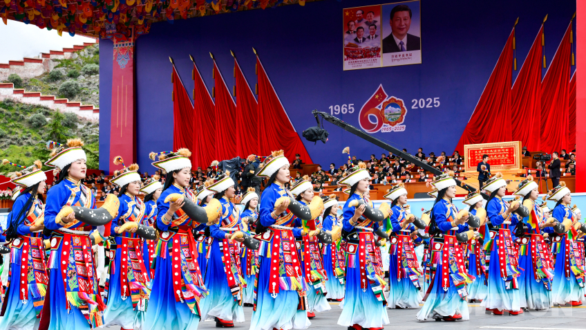 西藏自治區(qū)成立60周年慶祝大會群眾游行 攝影:趙振宇