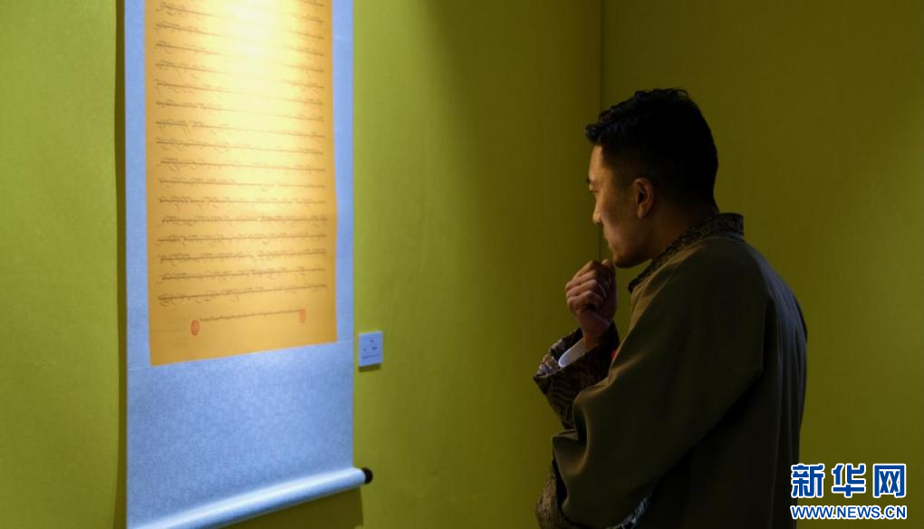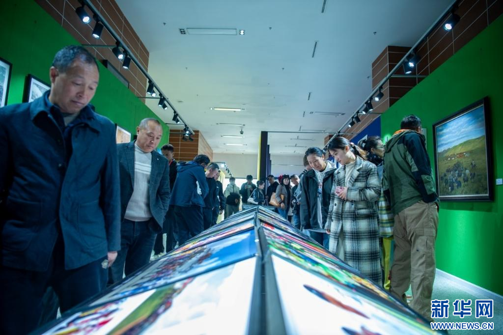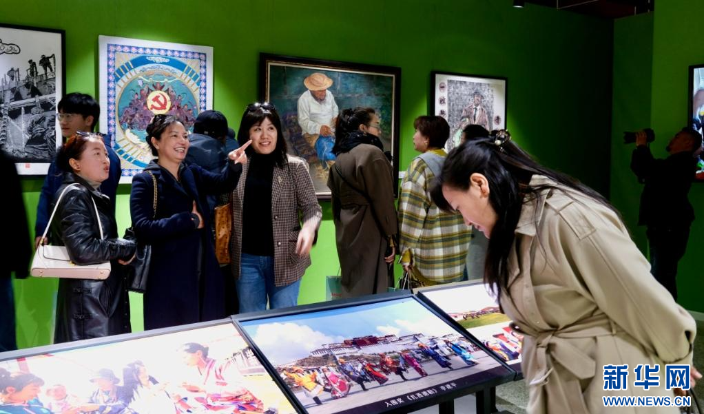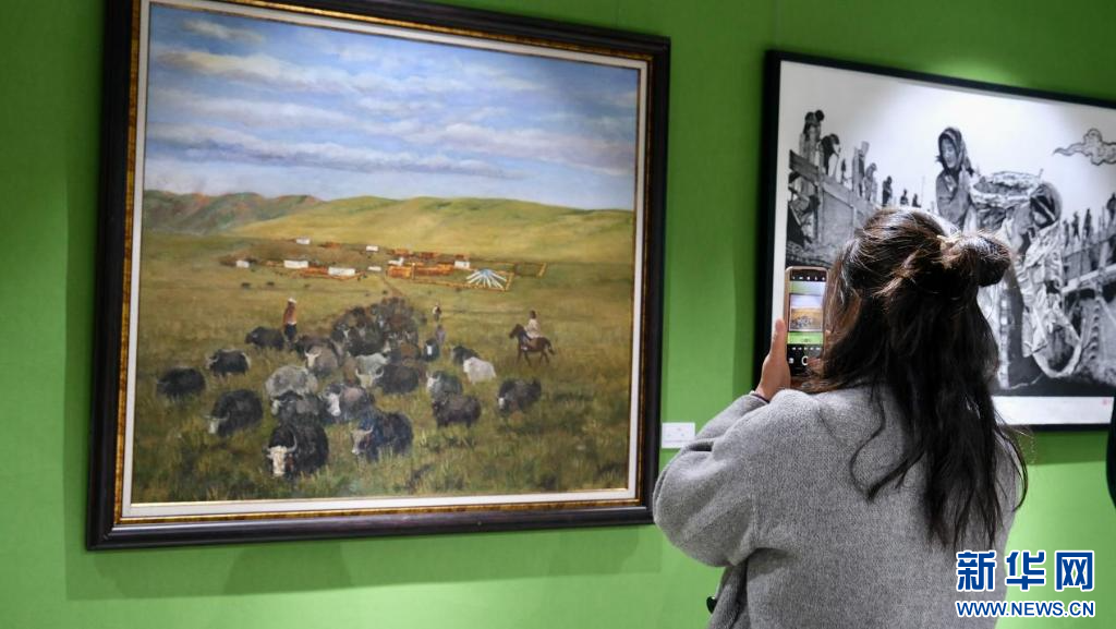 4月28日,第五屆民族團(tuán)結(jié)書法、美術(shù)、攝影、微視頻大賽作品展現(xiàn)場(chǎng)。新華網(wǎng) 旦增努布 攝