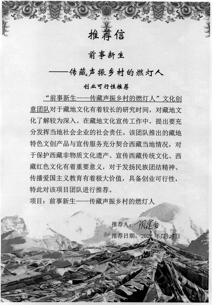 在西藏大學(xué)就讀期間,臧一陽(yáng)參與的《夏爾噶-傳藏聲振興村的燃燈人》《西藏紅色資源合理開發(fā)利用政策研究》項(xiàng)目,分別獲得了第八屆中國(guó)國(guó)際“互聯(lián)網(wǎng)+”大學(xué)生創(chuàng)新創(chuàng)業(yè)大賽銀獎(jiǎng)、自治區(qū)第八屆“成才杯”銀獎(jiǎng)、國(guó)家級(jí)大學(xué)生創(chuàng)業(yè)項(xiàng)目等獎(jiǎng)項(xiàng)。