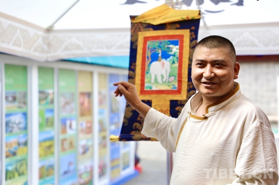 活動(dòng)結(jié)束后,扎西尖措接受了記者的采訪。他說(shuō):“唐卡作為一種獨(dú)具青藏高原特色的繪畫(huà)藝術(shù),在千百年的繼承和發(fā)展中,不斷借鑒和吸收周邊各民族的文化藝術(shù)精華,經(jīng)過(guò)漫長(zhǎng)的發(fā)展過(guò)程,逐漸形成了眾多異彩紛呈的風(fēng)格流派,呈現(xiàn)出多姿多彩的風(fēng)貌特征,并以其龐大的內(nèi)容體系,獨(dú)特的藝術(shù)表現(xiàn)形式,非凡的工藝水平在我國(guó)乃至世界藝術(shù)之林中熠熠生輝。如今隨著時(shí)代的進(jìn)步,唐卡不僅僅限于宗教文化,更是民間的文化藝術(shù)。唐卡繪畫(huà)主題既有守正也有創(chuàng)新,有謳歌新時(shí)代的題材、也有禮贊廣大人民群眾的圖景。不拘泥于宗教為主的傳統(tǒng)題材。