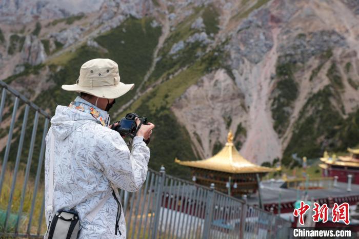 8月20日,參加2024瀾湄國(guó)際影像周的中外嘉賓來到青海省玉樹藏族自治州囊謙縣的達(dá)那寺,攝影師拍照留念。達(dá)那寺是囊謙縣唯一一座國(guó)家級(jí)文物保護(hù)單位。達(dá)那寺藏語(yǔ)稱為“達(dá)那僧格南宗”,意為“馬耳獅子天堡”,因其坐落之山形似獅子、山上一塊巖石酷似馬耳而得名。中新社記者 薛蒂 攝