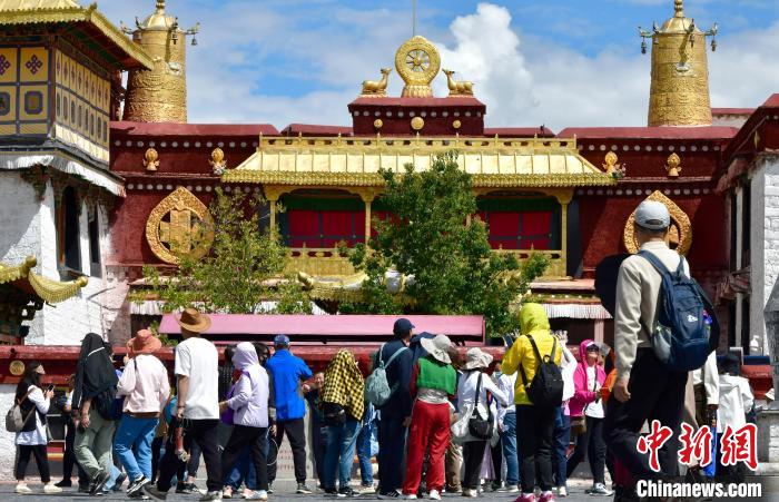 圖為9月7日游客在大昭寺廣場游覽。中新社記者 李林 攝