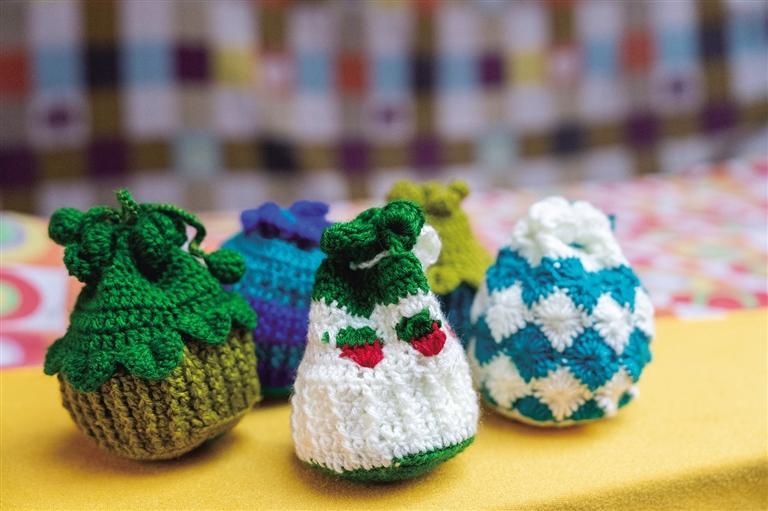 阿佳們親手鉤織的毛線茶杯套、毛線桌墊,既實用又色彩鮮明,墻上掛滿的手工編織牛毛包讓人“糾結癥”都犯了!和這座商城的建筑一樣,這里出售的美物將藏式美學展現(xiàn)得淋漓盡致。此外,這里還能淘到毛氈玩偶、毛氈風鈴、毛茸茸的藏戲面具掛件等一些能給生活增添樂趣的“小廢物”。