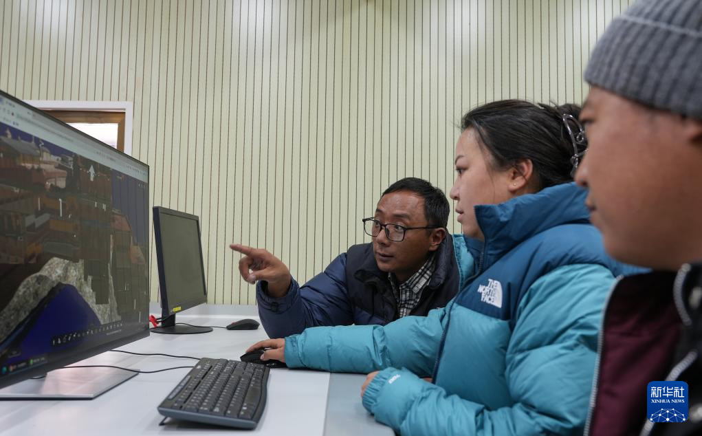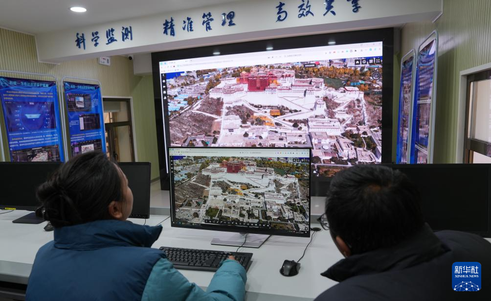 12月4日,布達(dá)拉宮監(jiān)測(cè)中心的工作人員在查看布達(dá)拉宮三維圖像。新華社記者 晉美多吉 攝