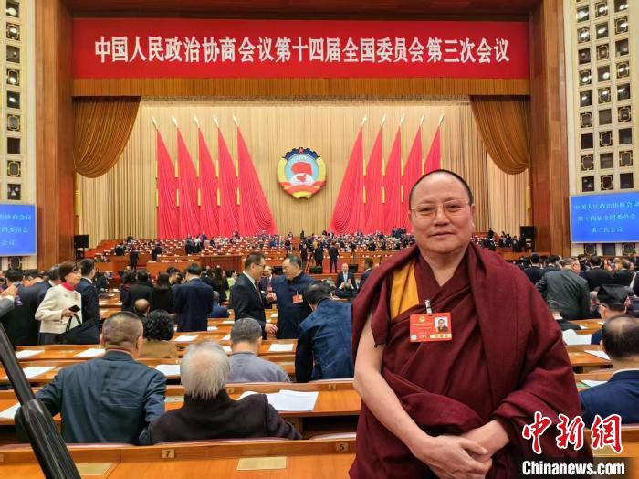 3月7日,全國(guó)政協(xié)委員達(dá)扎在北京參加中國(guó)人民政治協(xié)商會(huì)議第十四屆全國(guó)委員會(huì)第三次會(huì)議?!?受訪者供圖)