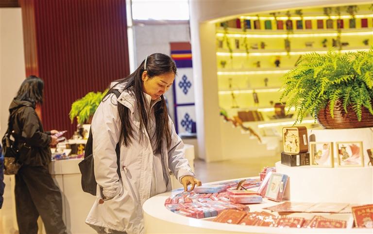 消費者在西藏博物館選購心儀的文創(chuàng)產(chǎn)品。