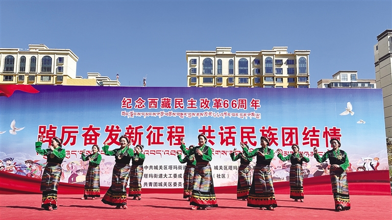 為隆重紀(jì)念西藏民主改革66周年,進(jìn)一步豐富居民群眾的精神文化生活,助力提升基層治理,3月26日,由中共拉薩市城關(guān)區(qū)塔瑪街道工作委員會(huì)、拉薩市城關(guān)區(qū)塔瑪街道辦事處主辦的紀(jì)念西藏民主改革66周年系列活動(dòng)在同心公園舉辦。據(jù)了解,此次活動(dòng)以“踔厲奮發(fā)新時(shí)代 共話民族團(tuán)結(jié)情”為主題,涵蓋文藝匯演和宣傳集市等,吸引了周邊眾多市民群眾參與。