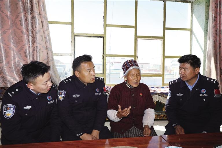 圖為移民管理警察走訪慰問老黨員倉(cāng)決普赤。通訊員 格熱 記者 王香香 攝