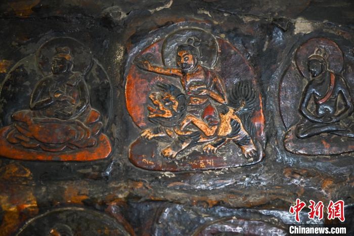 4月27日,記者探訪了當(dāng)雄縣貢堂鄉(xiāng)沖嘎?tīng)柎蹇雕R寺的瑪尼拉康?,斈崂凳窃撍鲁扌卸粗獾脑缙谧诮袒顒?dòng)場(chǎng)所,也是寺院里最古老的建筑。這里保存著令人驚嘆的石刻造像墻,這些石刻距今已有三百年歷史?,斈崂低庥^普通,但其室內(nèi)六面墻上整齊地貼滿(mǎn)了浮雕石刻板,共計(jì)1213塊(僅一塊缺失)。石刻內(nèi)容豐富,涵蓋了藏傳佛教各宗各派的本尊、祖師、佛母菩薩等,造型多姿多樣,線條清晰流暢。這處石刻造像墻對(duì)于研究西藏傳統(tǒng)雕刻、藏傳佛教以及歷史具有重大意義。中新社記者 貢嘎來(lái)松 攝