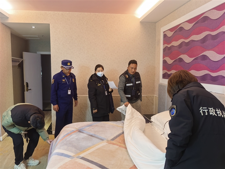 文旅部門(mén)對(duì)酒店進(jìn)行檢查?!D片由西藏自治區(qū)文旅廳執(zhí)法監(jiān)督處提供