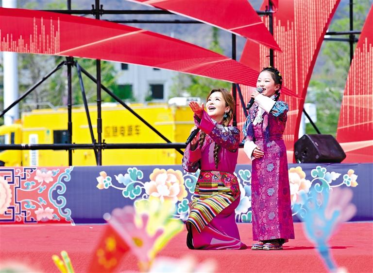 歌手平安與西藏珠峰少年合唱團(tuán)帶來(lái)歌曲《我愛(ài)你中國(guó)》。(其余圖片均由記者 唐斌 白瑪澤旺 王敏 丹增群培 旦增蘭澤 攝)