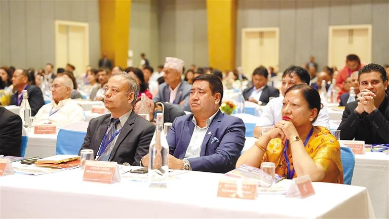 參加活動的尼泊爾嘉賓在會場拍攝。