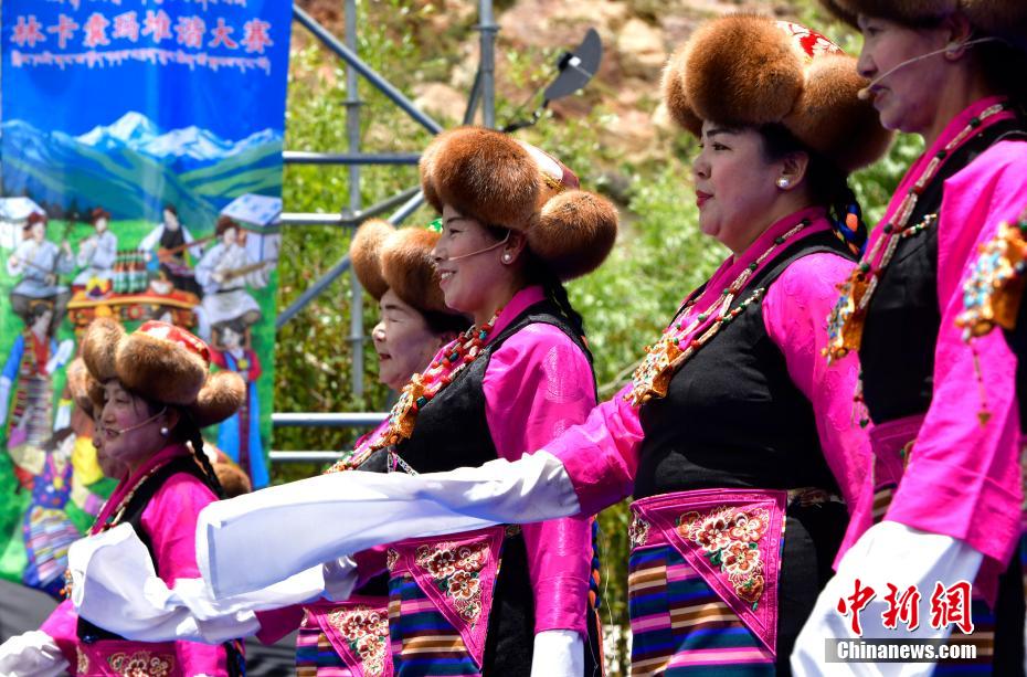 6月28日,拉薩首屆林卡囊瑪堆諧大賽在達孜區(qū)舉辦?,F(xiàn)場,經(jīng)過前期海選入圍的19支隊伍依次上臺競技。囊瑪和堆諧,合稱囊瑪堆諧,是西藏民間歌舞發(fā)展到較高層次、集歌舞樂為一體的珍貴傳統(tǒng)文化藝術遺產(chǎn),深受當?shù)孛癖姷南矏叟c追捧。圖為首屆林卡囊瑪堆諧大賽比賽現(xiàn)場。