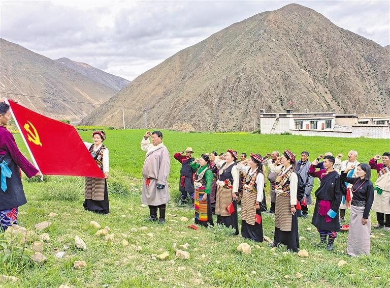 為熱烈慶祝中國(guó)共產(chǎn)黨成立104周年,7月1日,自治區(qū)稅務(wù)局駐謝通門(mén)縣仁欽則鄉(xiāng)倫珠孜村工作隊(duì)組織全體黨員在田間地頭開(kāi)展重溫入黨誓詞活動(dòng)。