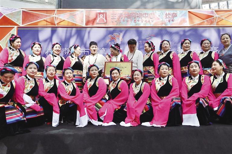 近日,拉薩市第三屆鍋莊舞大賽決賽在拉薩王府井購物中心舉行。本次大賽由拉薩市體育局主辦、拉薩布達(dá)拉文化旅游集團(tuán)有限公司承辦。來自青年組和中年組的9支代表隊從預(yù)賽中脫穎而出,展開了激烈角逐。
