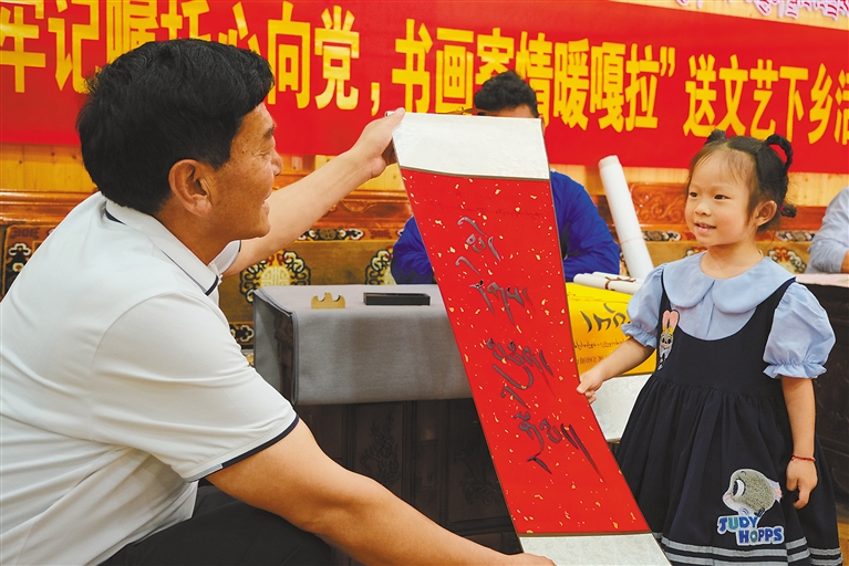 近日,林芝市文聯(lián)在巴宜區(qū)林芝鎮(zhèn)嘎拉村開展“牢記囑托心向黨 書畫寄情暖嘎拉”送文藝下鄉(xiāng)活動。書法家們揮毫潑墨,將飽含著美好祝福與深厚情誼的書法作品贈送給村民;美術家和攝影家則帶來記錄嘎啦村發(fā)展變遷、村民們幸福生活的作品。
