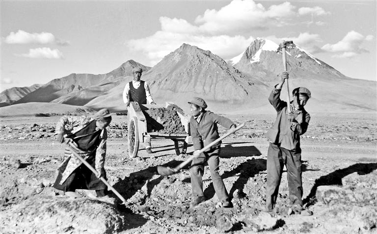 圖為上世紀(jì)70年代,加加養(yǎng)護(hù)段養(yǎng)路職工戰(zhàn)斗在雪山公路上(資料圖片)。 蘇遠(yuǎn)忠 攝
