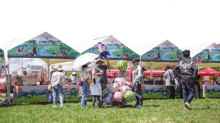 記者看到,綠野市集“沖賽康”充滿(mǎn)了煙火氣,30余家特色攤位齊聚林間。這里不僅有藏式甜茶、糌粑制品等傳統(tǒng)美食,讓游客大飽口福,還有氆氌文創(chuàng)、非遺手作等特色產(chǎn)品,滿(mǎn)足游客的購(gòu)物需求。此外,互動(dòng)游戲與民俗體驗(yàn)也吸引了眾多游客參與,營(yíng)造出充滿(mǎn)活力的林卡生活場(chǎng)景。