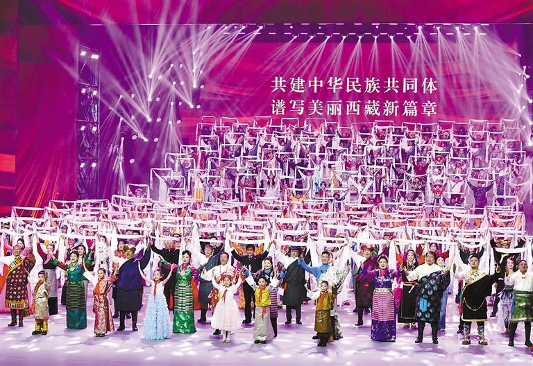 8月20日晚,慶祝西藏自治區(qū)成立60周年文藝晚會(huì)《雪域歡歌》在西藏大劇院舉行。演出分“幸福起點(diǎn)”“奔跑的高原”“新的征程”三大篇章,十余個(gè)歌舞節(jié)目禮贊雪域巨變,表達(dá)各族人民聽黨話、感黨恩、跟黨走的共同心聲。