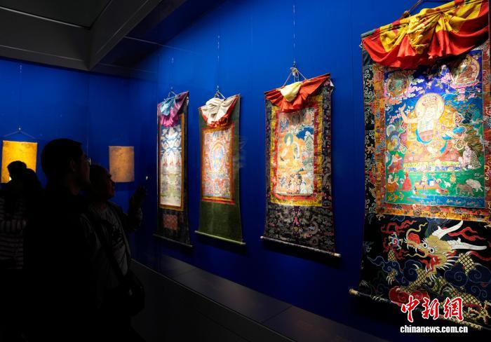 圖為觀眾欣賞展覽中的唐卡。李林 攝