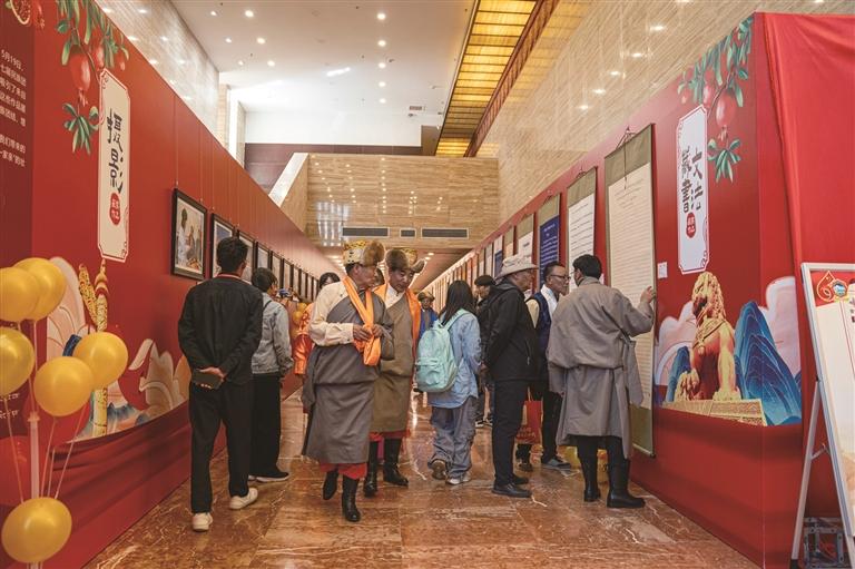 頒獎儀式結(jié)束后,參加儀式的嘉賓和獲獎?wù)咭煌瑓⒂^了獲獎作品展覽,展廳內(nèi)人頭攢動,近100幅優(yōu)秀作品與各族群眾見面。拉薩市民李芳告訴記者:“這些作品真是太精彩了,每一幅都充滿了創(chuàng)意和情感,讓我深刻感受到了民族團結(jié)的力量和美好。通過參觀這個展覽,我更加明白了民族團結(jié)的重要性,也希望我們各族人民能夠一直團結(jié)友愛,共同創(chuàng)造更加美好的未來?!绷硪晃挥^眾扎西也感慨地說:“看到這些作品,我仿佛看到了我們各族人民攜手共進、共同發(fā)展的歷程,這讓我感到非常自豪和溫暖。”