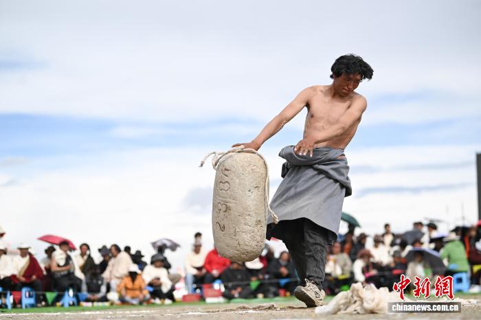 9月5日,2025年那曲市恰青賽馬節(jié)在格薩爾賽馬場(chǎng)開(kāi)幕。當(dāng)日,賽場(chǎng)中不僅有駿馬飛馳,更有力量的精彩較量。在抱石頭比賽現(xiàn)場(chǎng),來(lái)自那曲市各縣(區(qū))的男女選手們鼓足干勁,挑戰(zhàn)自我。這項(xiàng)傳統(tǒng)體育項(xiàng)目,展現(xiàn)了藏北人民的堅(jiān)韌與力量。圖為男參賽選手在抱石頭比賽。中新社記者 貢嘎來(lái)松 攝