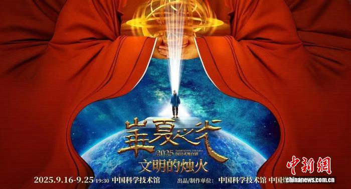 中國科技館9月14日發(fā)布消息說,值此首個全國科普月期間,該館將于9月16日至25日(每晚19:30-20:45)連演10場沉浸式舞臺劇《華夏之光-文明的燭火》,公眾可于9月15日中午12:00起,通過其官方網(wǎng)絡平臺預約觀看。