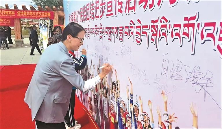 圖為民族團結進步月宣傳活動現(xiàn)場,群眾紛紛簽下自己的名字,表達對維護民族團結的堅定承諾。通訊員 鄭凱凱 攝