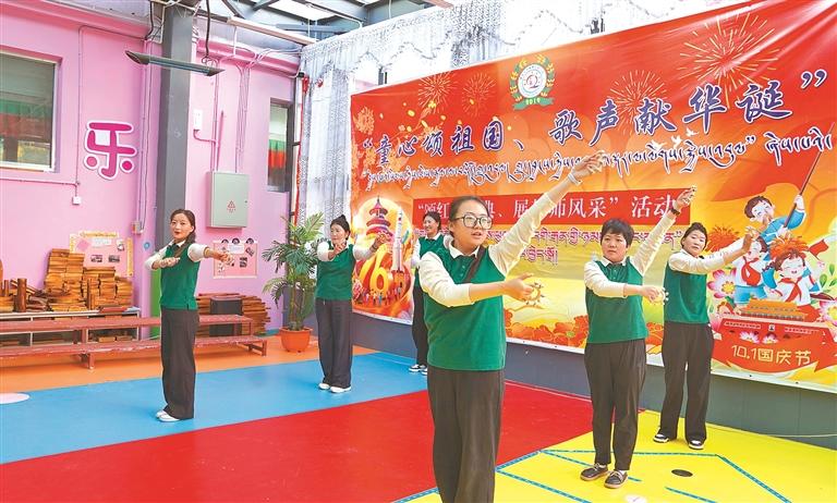 近日,拉薩市墨竹工卡縣第二幼兒園黨支部舉辦紅歌傳唱暨教師器械操展示活動,全場揮旗齊唱《今天是你的生日》。黨支部負責人表示,將持續(xù)探索推動黨建與學(xué)前教育同頻共振。