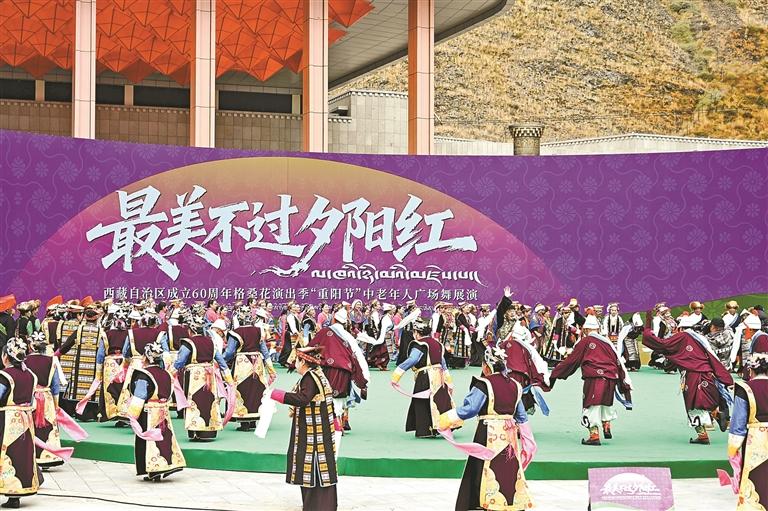 圖為“最美不過夕陽紅”中老年人廣場舞展演現(xiàn)場。記者 歐珠次仁 攝