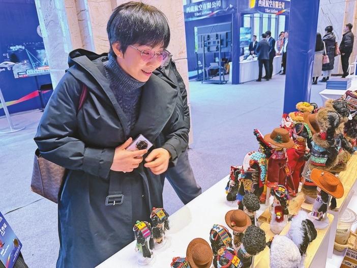 與會(huì)嘉賓在企業(yè)展位前欣賞文創(chuàng)產(chǎn)品。記者 索朗瓊珠 攝