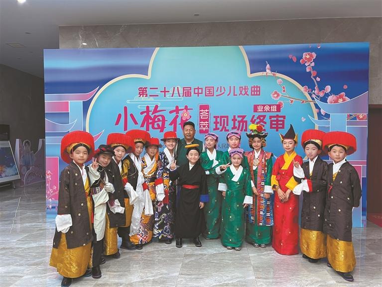 第二十八屆“中國少兒戲曲小梅花薈萃”活動上,堆龍德慶區(qū)青少年活動中心少兒藏戲班的學(xué)生與洛桑扎西合影留念。(除圖③外,其余照片均由記者 拉巴桑姆 攝)