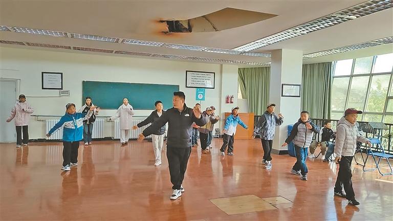 洛桑扎西在堆龍德慶區(qū)青少年活動中心,為即將前往北京參賽的少兒藏戲班學(xué)生指導(dǎo)動作。