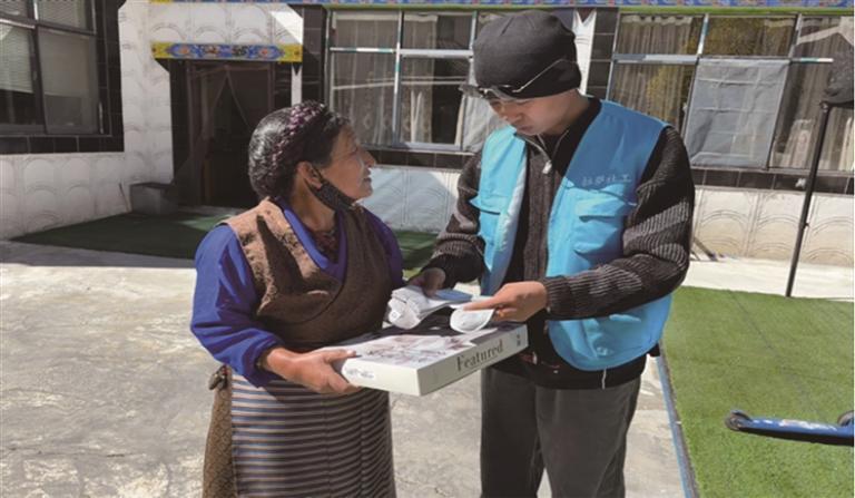 柳梧街道民政服務(wù)站開(kāi)展送溫暖活動(dòng)。圖由拉薩市民政局提供
