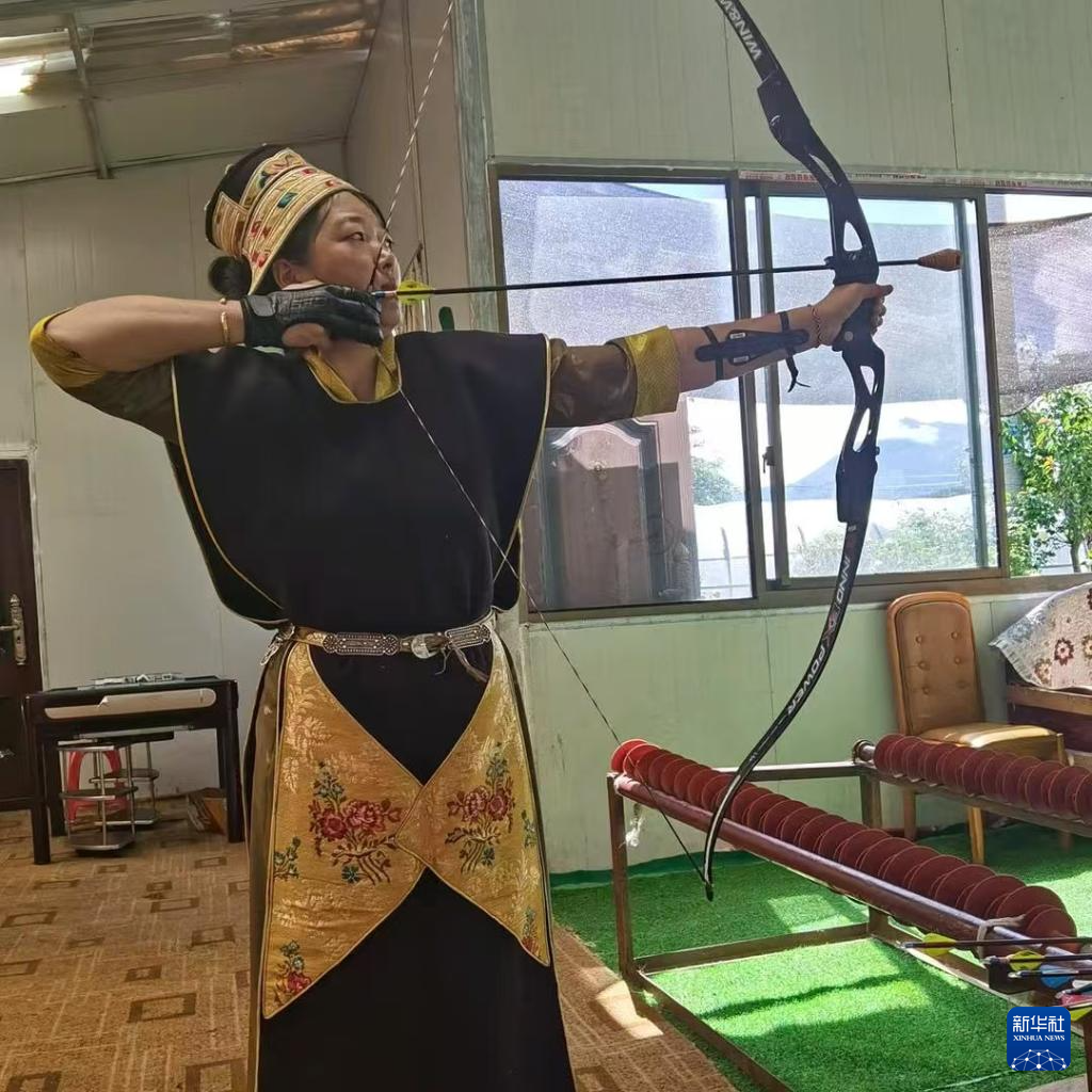 2023年,在百巴鎮(zhèn)豐收節(jié)的響箭比賽上,巴桑卓瑪作為唯一一位女射手,和另外9名隊(duì)員一起為隊(duì)伍取得了第三名?!斑@幾年到我這里體驗(yàn)和練習(xí)響箭的人越來越多,我還教不少阿佳(藏語“姐姐”之意)練習(xí)拉弓?!卑蜕W楷斚M芙M織起西藏第一支女子響箭隊(duì)。