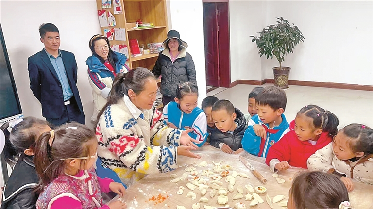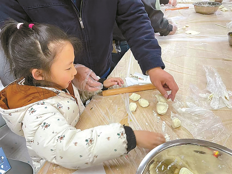 孩子們?cè)趯W(xué)包餃子。記者 劉斯宇 攝